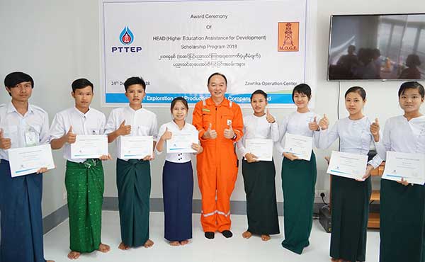 29 January 2019, Yangon, Myanmar – PTTEP Myanmar Asset (PTTEP) organized the awarding ceremony, granted nine HEAD scholarships to new batch of selected local students, at Zawtika Operating Centre on 24 December 2018, reinforcing its commitment to developing Myanmar’s manpower to support the country’s development while empowering the local community in its operation area.